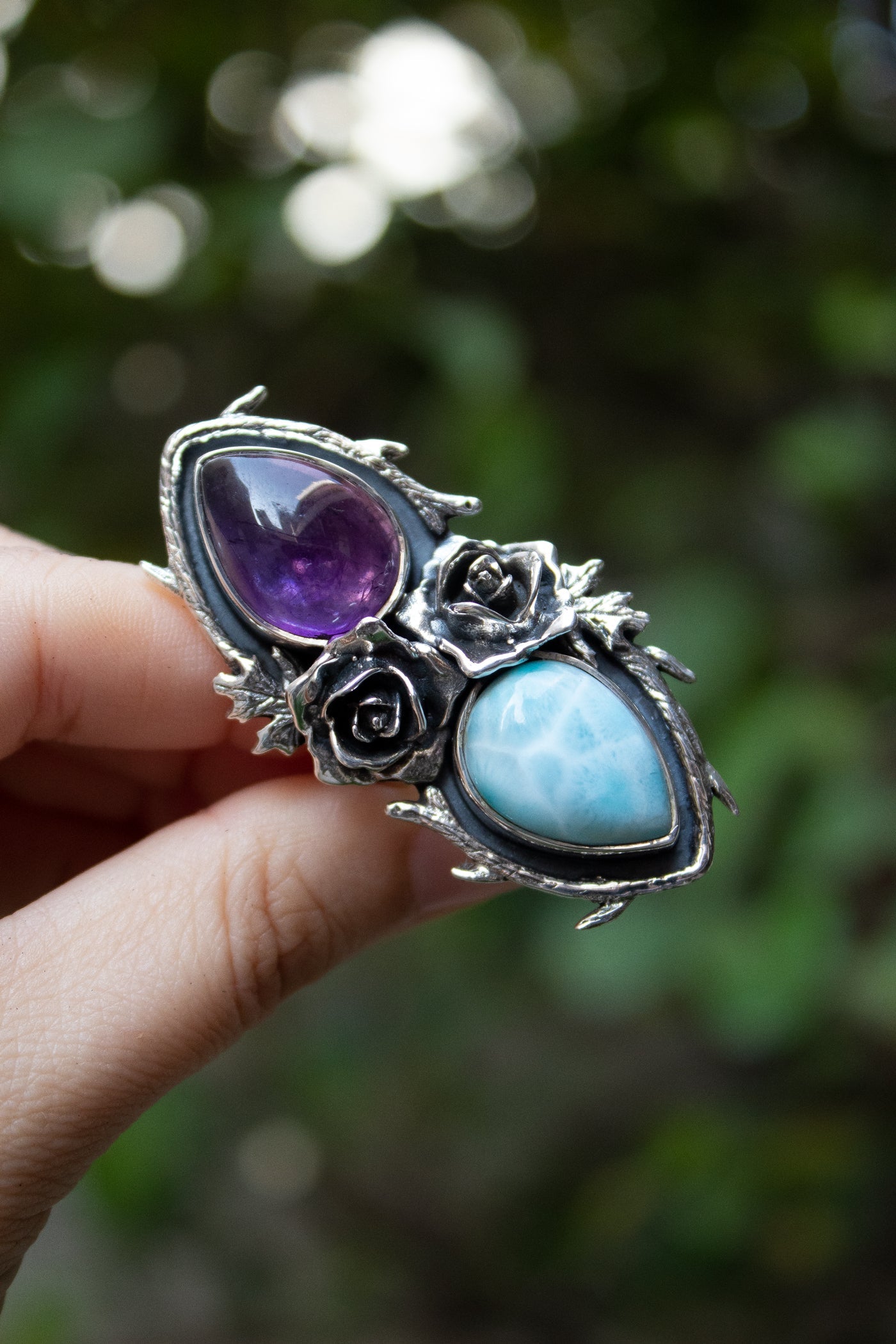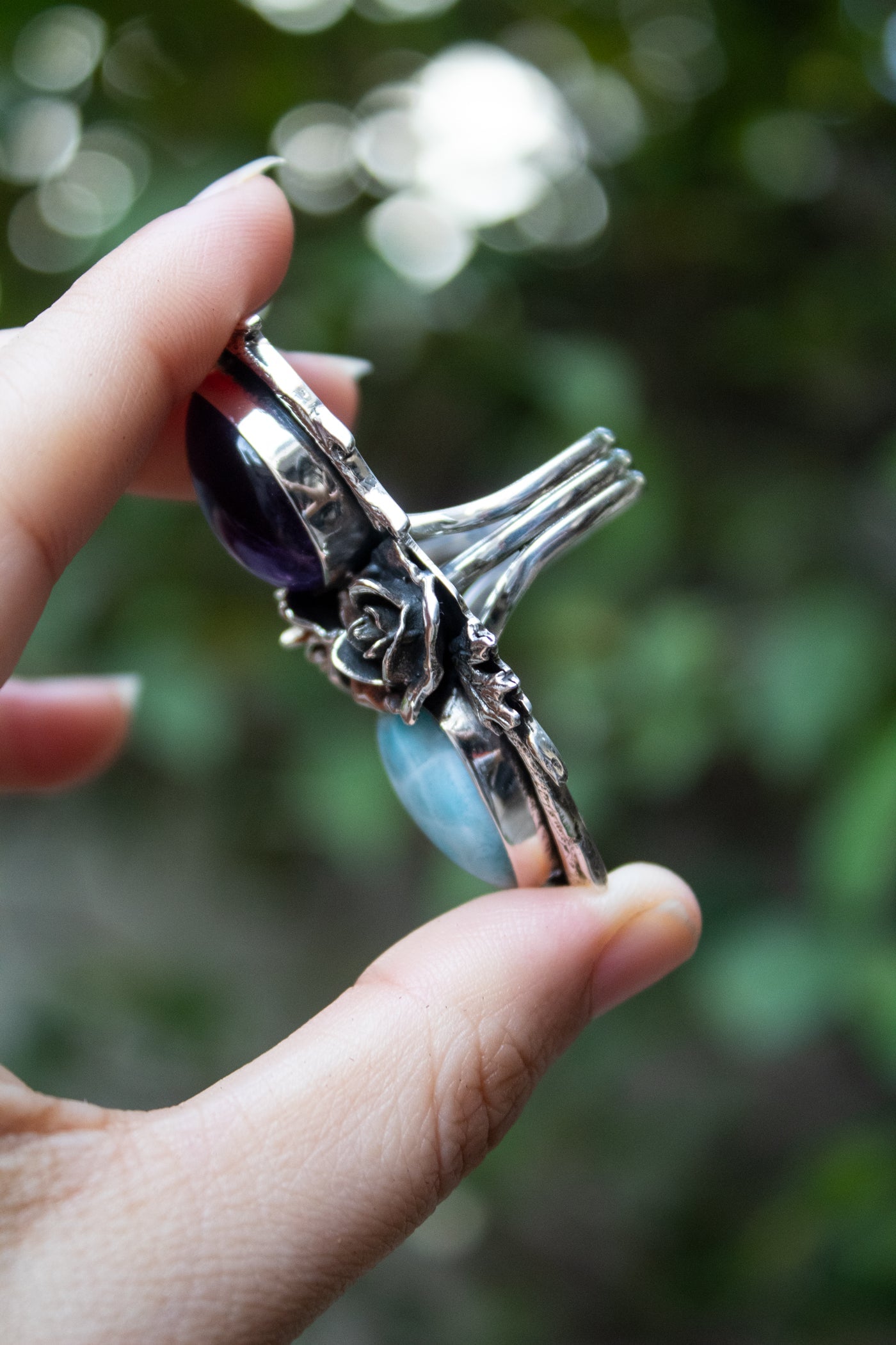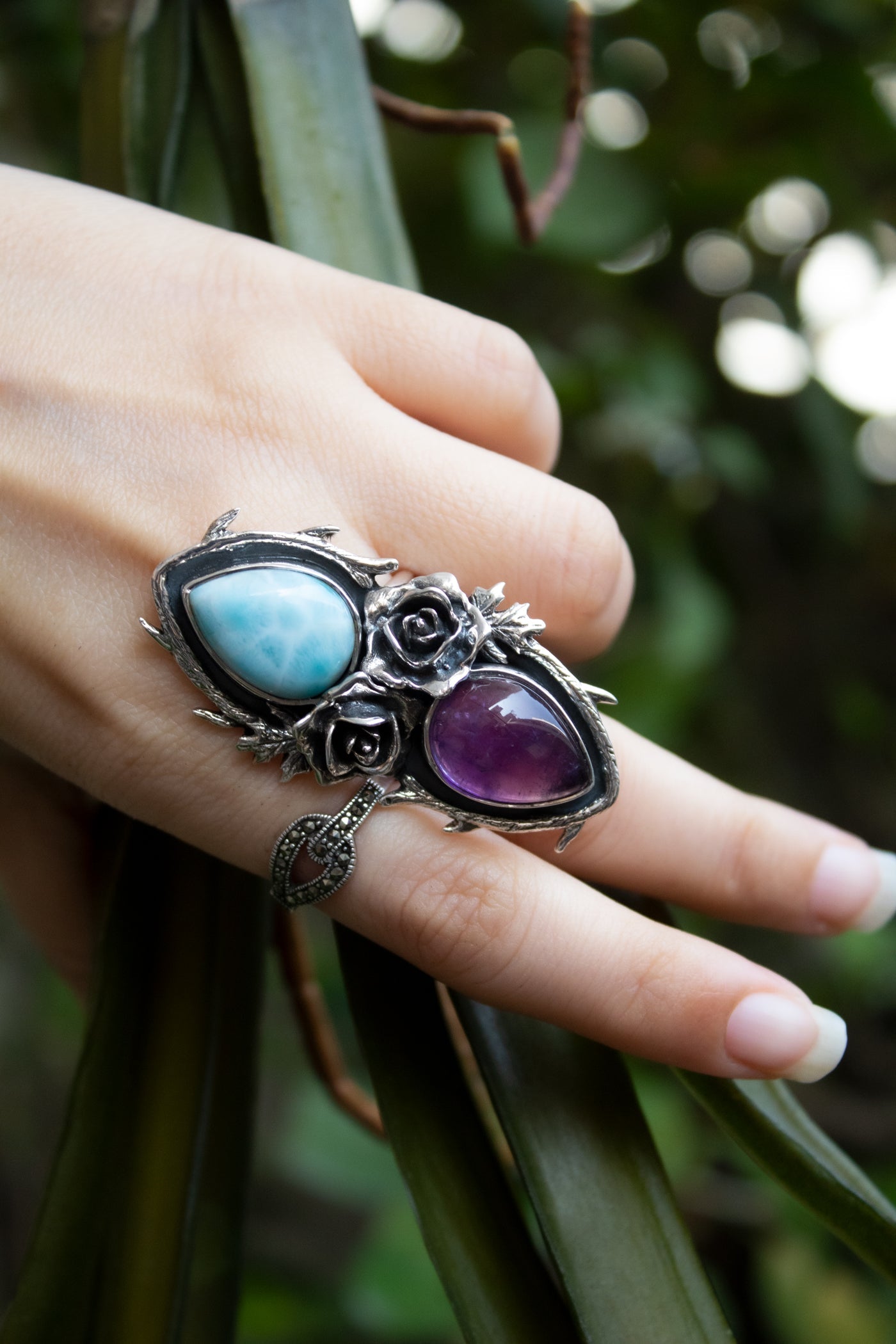 Amethyst & Larimar Rose Ring
