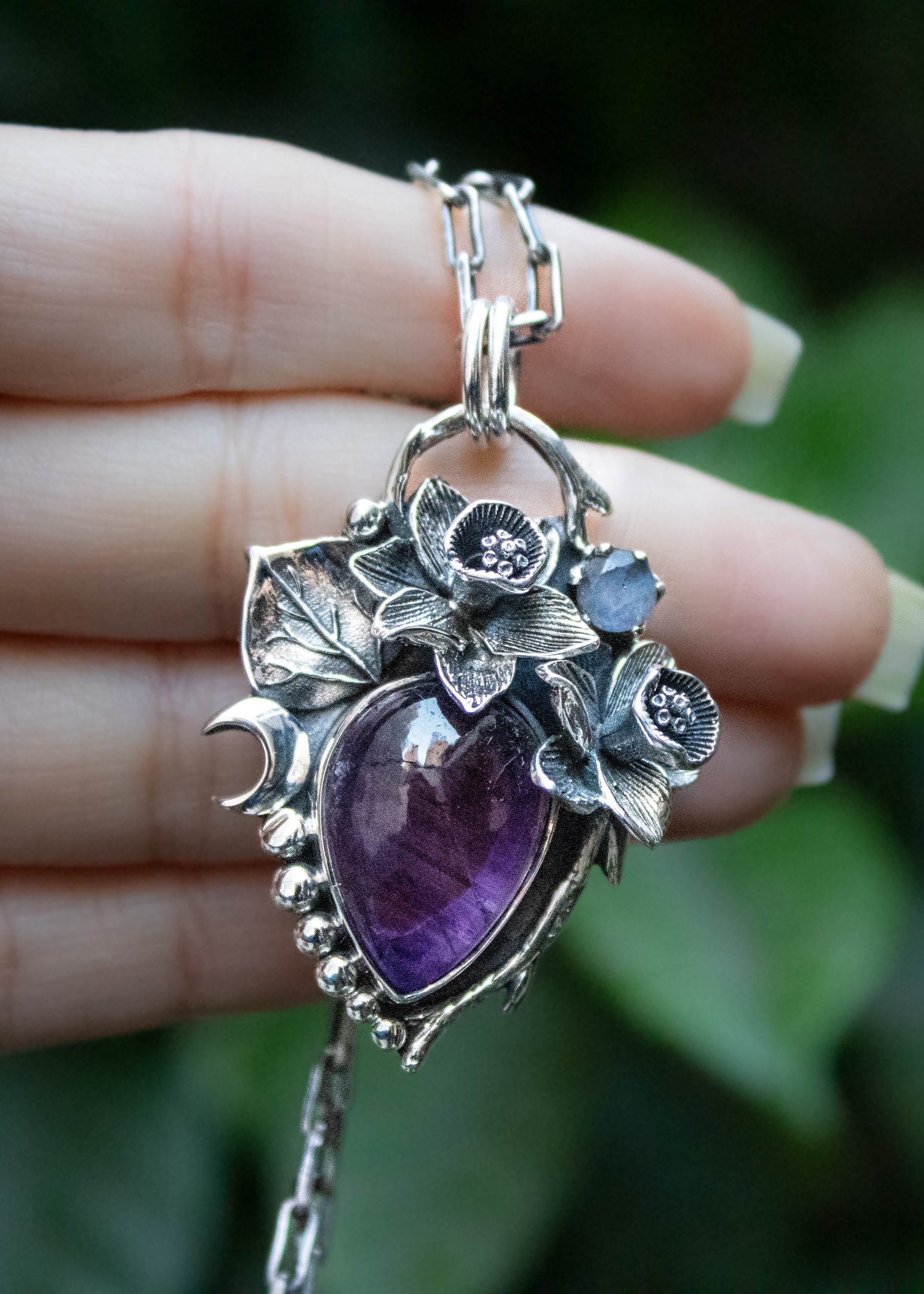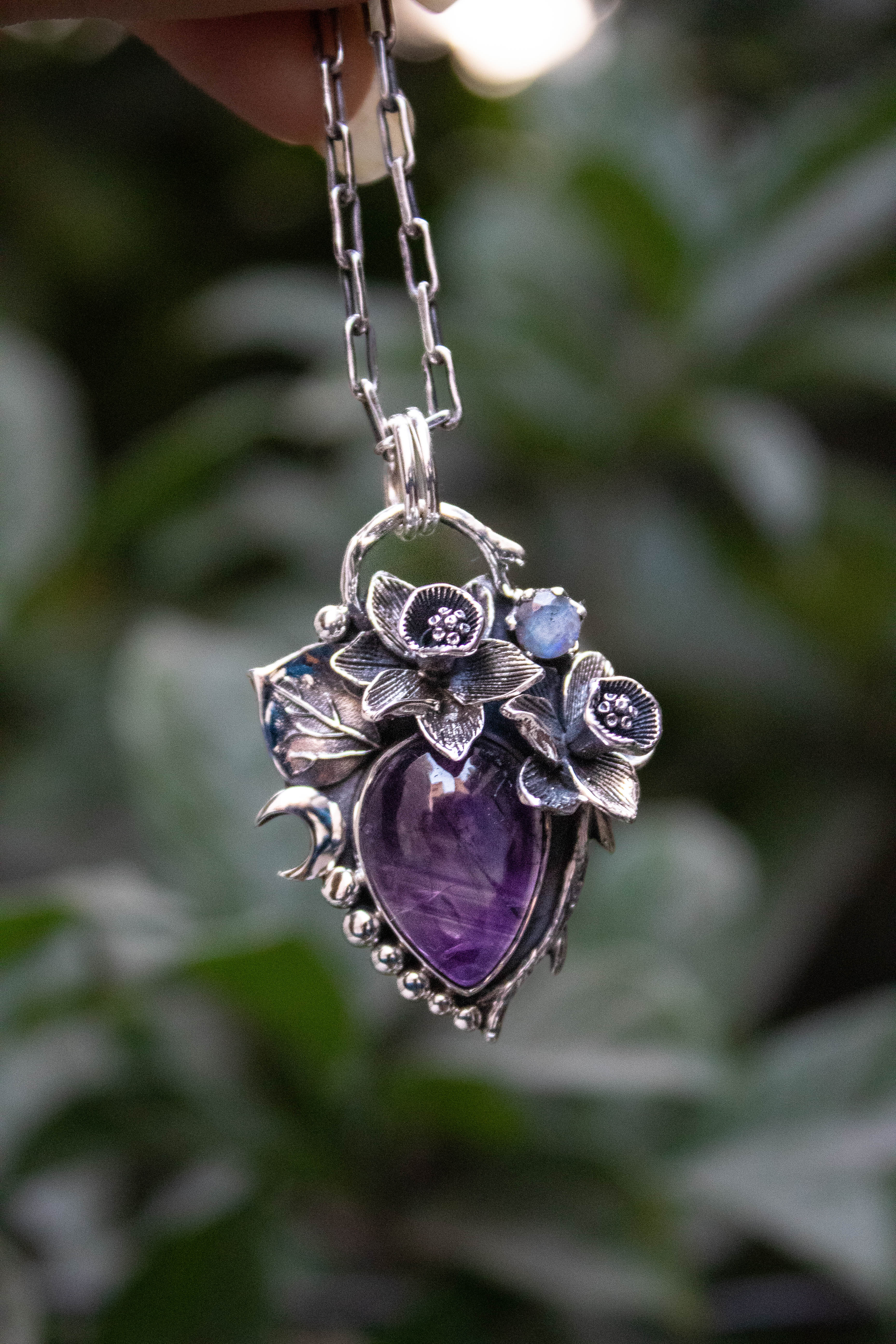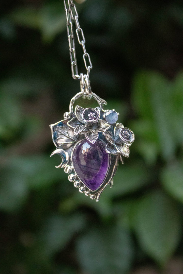 Lunar Bloom Amethyst & Moonstone Pendant