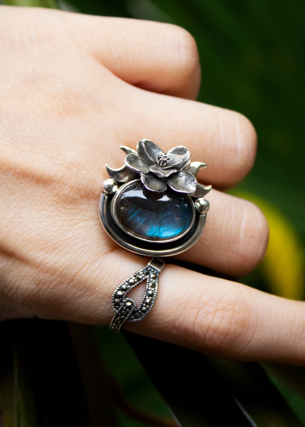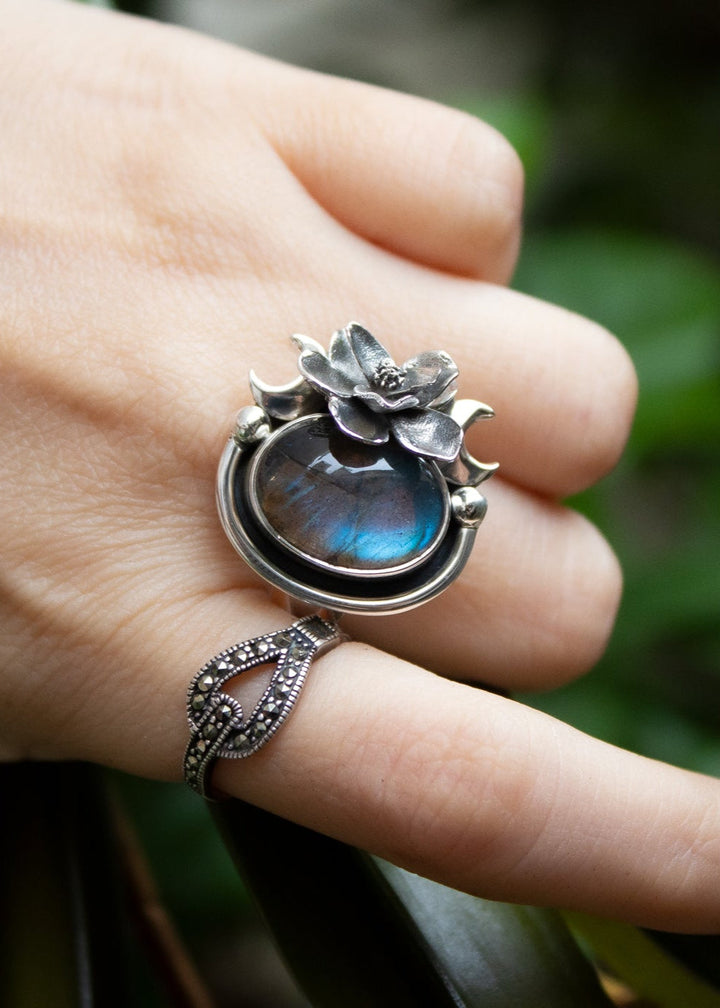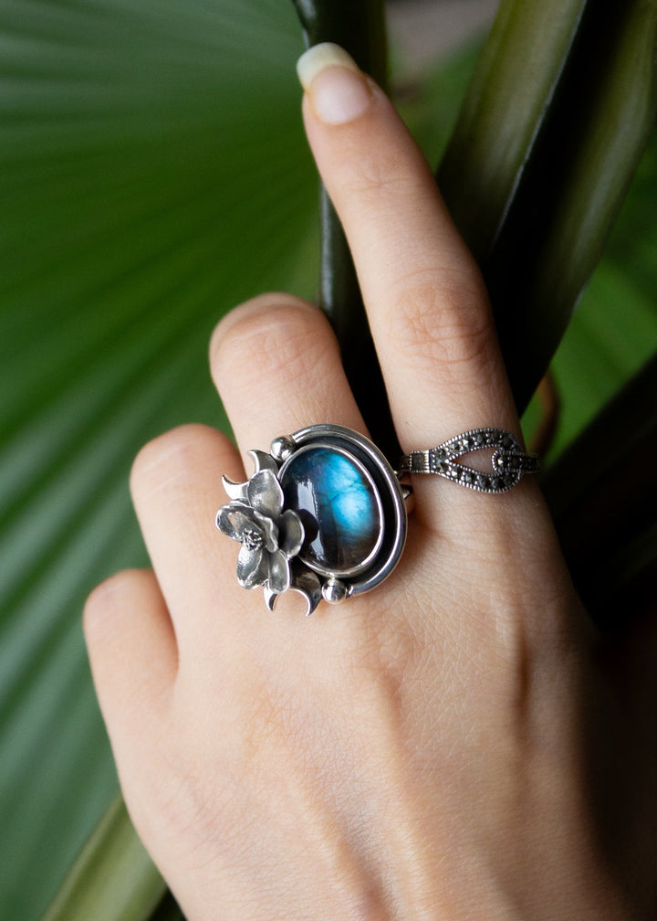 Midnight Bloom Labradorite Ring