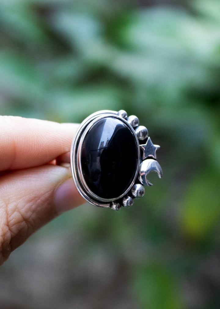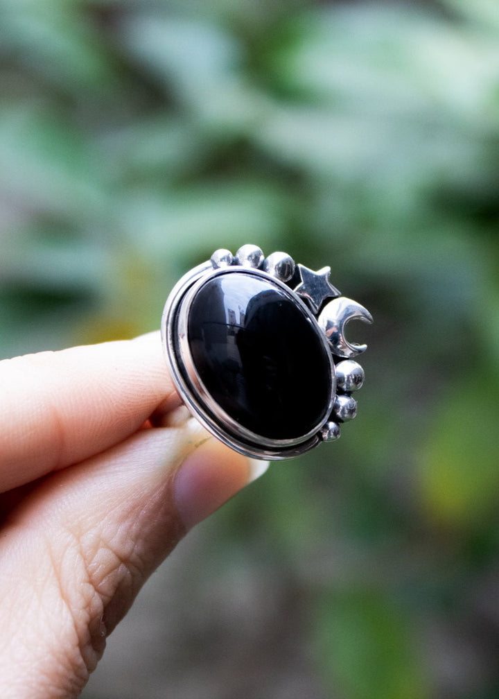 Midnight Onyx Moon & Stars Ring