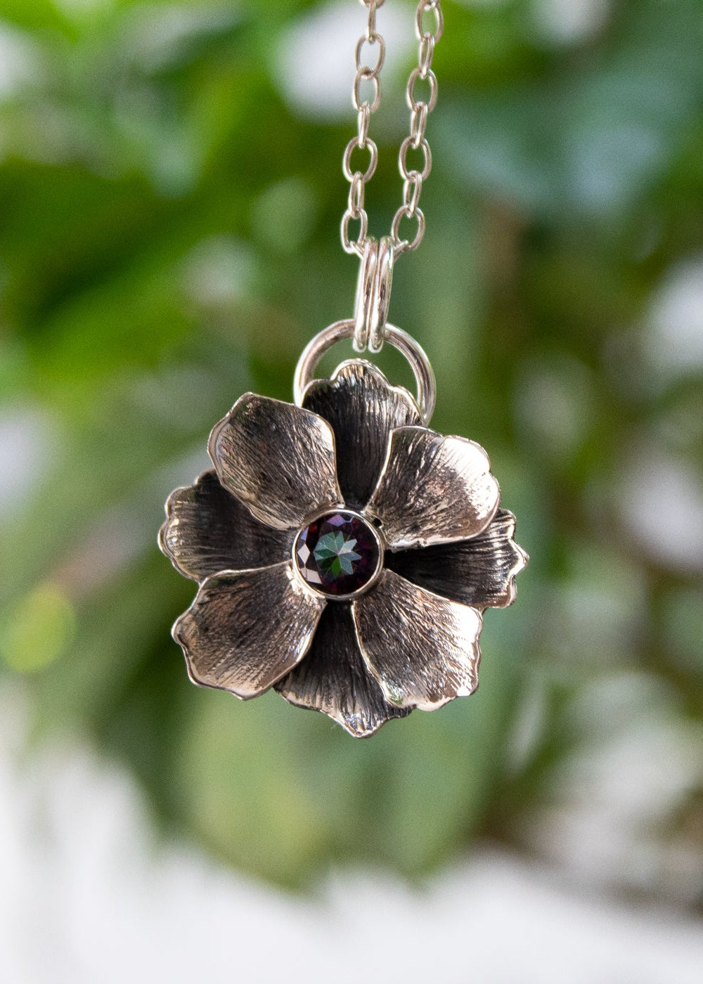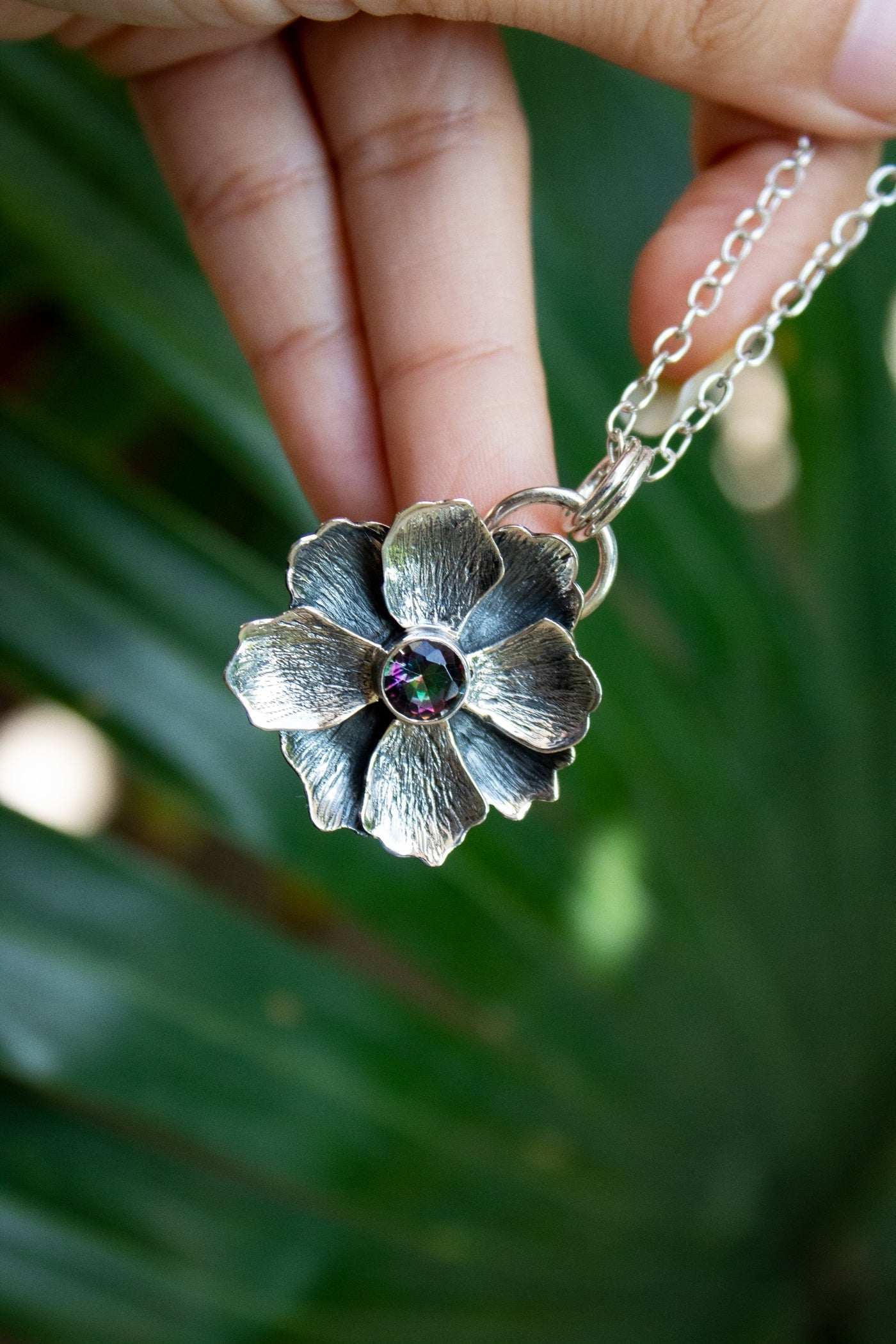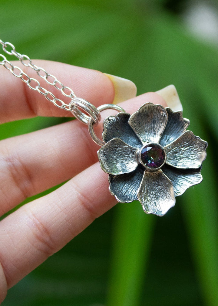 Mystic Bloom Pendant – Mystic Topaz & Silver Flower