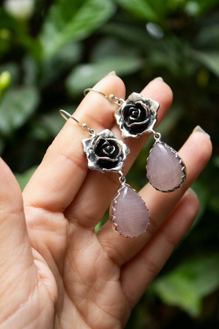 Midnight Rose Quartz Earrings