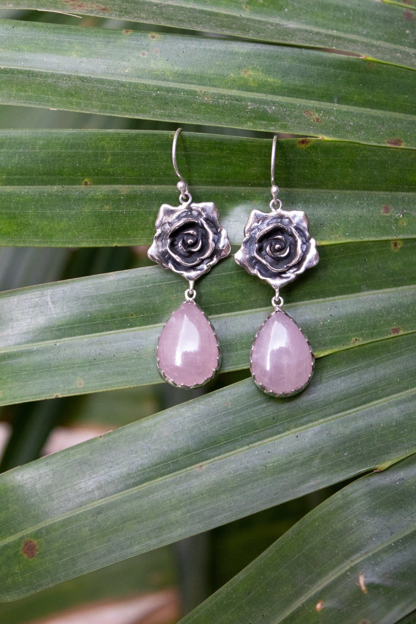 These sterling silver earrings feature hand-carved roses that bloom above soft
